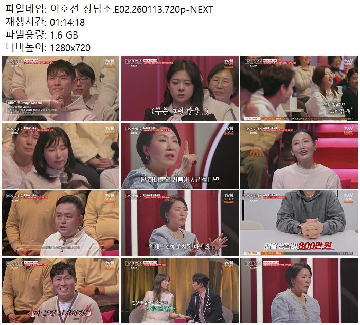 | 이호선 상담소.E02.260113.720p-NEXT.mp4 | 1.6 G | 01:14:00 | 1280x720 |