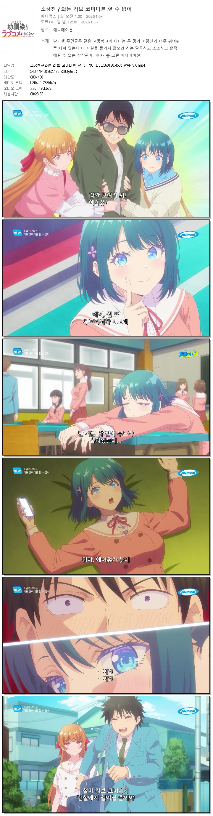 | 소꿉친구와는 러브 코미디를 할 수 없어.E03.260120.450p.WANNA.mp4 | 240.4 M | 00:23:58 | 800x450 |