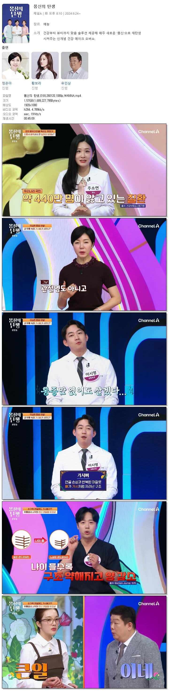 | [채널A] 몸신의 탄생.E68.260120.1080p.WANNA[황보라, 유민상].mp4 | 1.6 G | 00:45:09 | 1920x1080 |