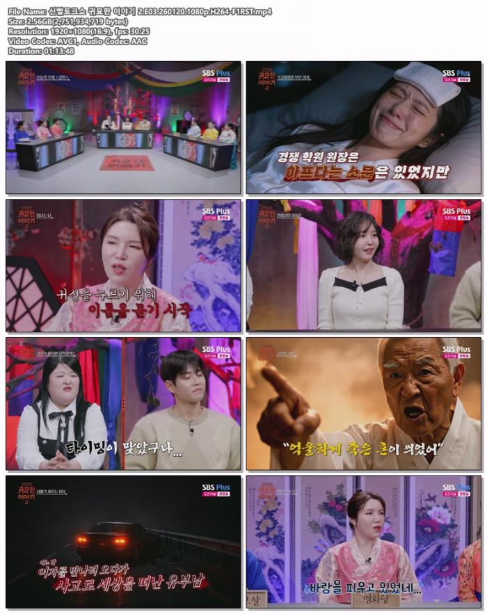 | 신빨토크쇼 귀묘한 이야기 2.E03.260120.1080p.H264-F1RST.mp4 | 2.6 G | 01:13:00 | 1920x1080 |
