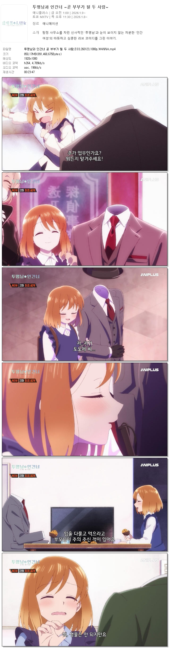 | 투명남과 인간녀 곧 부부가 될 두 사람.E03.260123.1080p.WANNA.mp4 | 850.2 M | 00:23:47 | 1920x1080 |