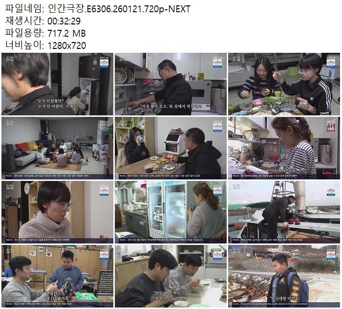 | 인간극장.E6306.260121.720p-NEXT.mp4 | 717.2 M | 00:32:29 | 1280x720 |
