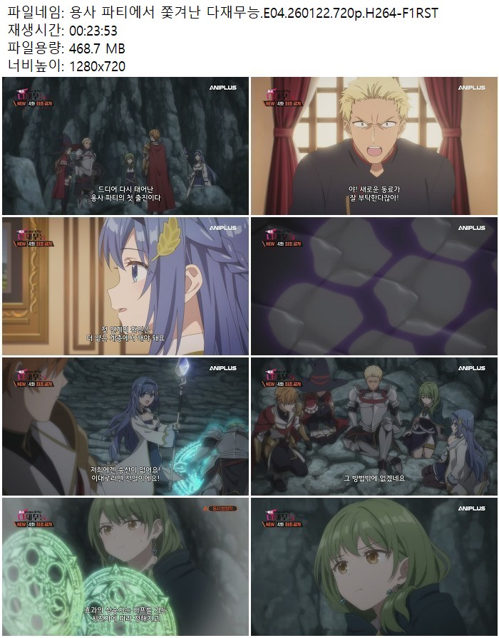 | 용사 파티에서 쫓겨난 다재무능.E04.260122.720p.H264-F1RST.mp4 | 468.7 M | 00:23:53 | 1280x720 |