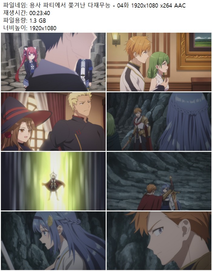 | 용사 파티에서 쫓겨난 다재무능 - 04화 1920x1080 x264 AAC.mkv | 1.3 G | 00:23:40 | 1920x1080 |