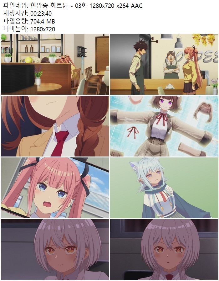 | 한밤중 하트튠 - 03화 1280x720 x264 AAC.mkv | 704.4 M | 00:23:40 | 1280x720 |