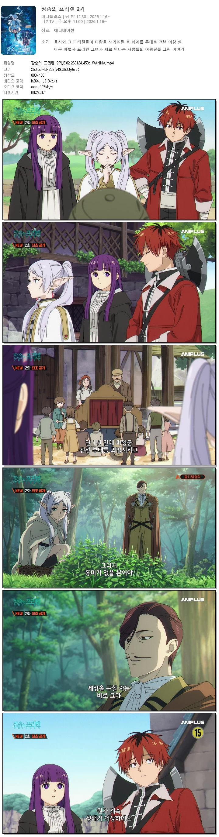 | 장송의 프리렌 2기.E02.260124.450p.WANNA.mp4 | 250.6 M | 00:24:07 | 800x450 |