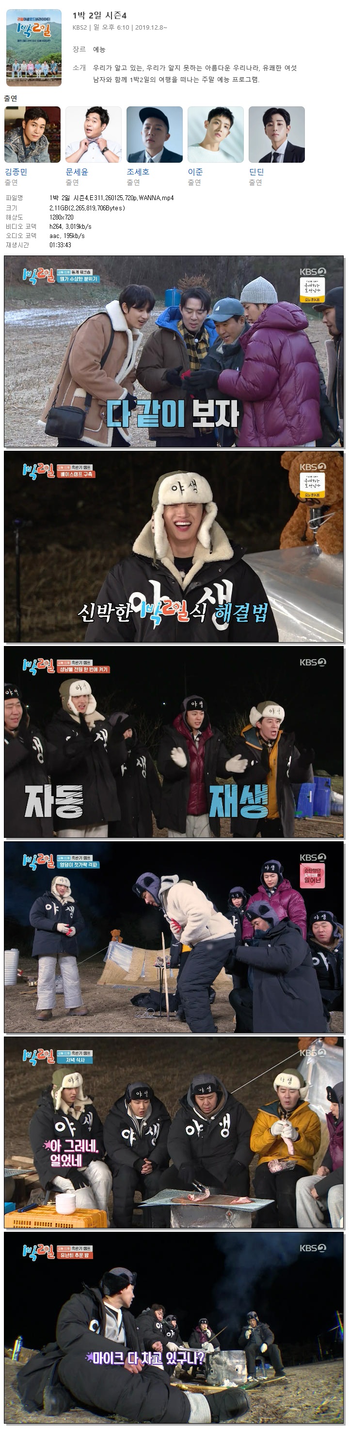 | [KBS2] 1박 2일 시즌4.E311.260125.720p.WANNA[김종민, 딘딘].mp4 | 2.1 G | 01:33:43 | 1280x720 |