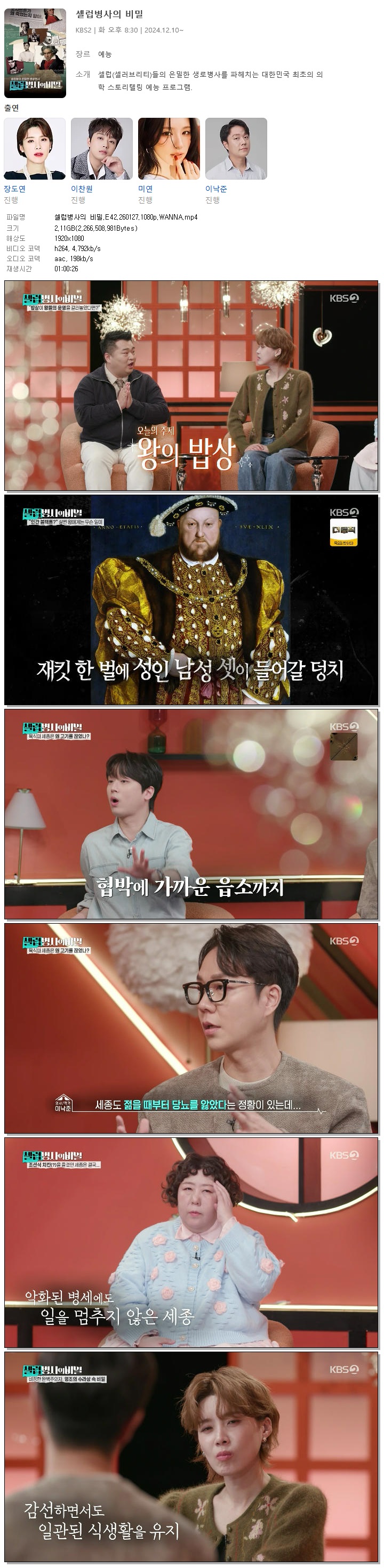 | [KBS2] 셀럽병사의 비밀.E42.260127.1080p.WANNA[장도연, 이찬원].mp4 | 2.1 G | 01:00:26 | 1920x1080 |
