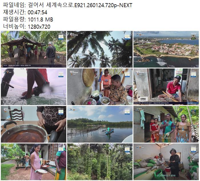 | 걸어서 세계속으로.E921.260124.720p-NEXT.mp4 | 1011.8 M | 00:47:54 | 1280x720 |