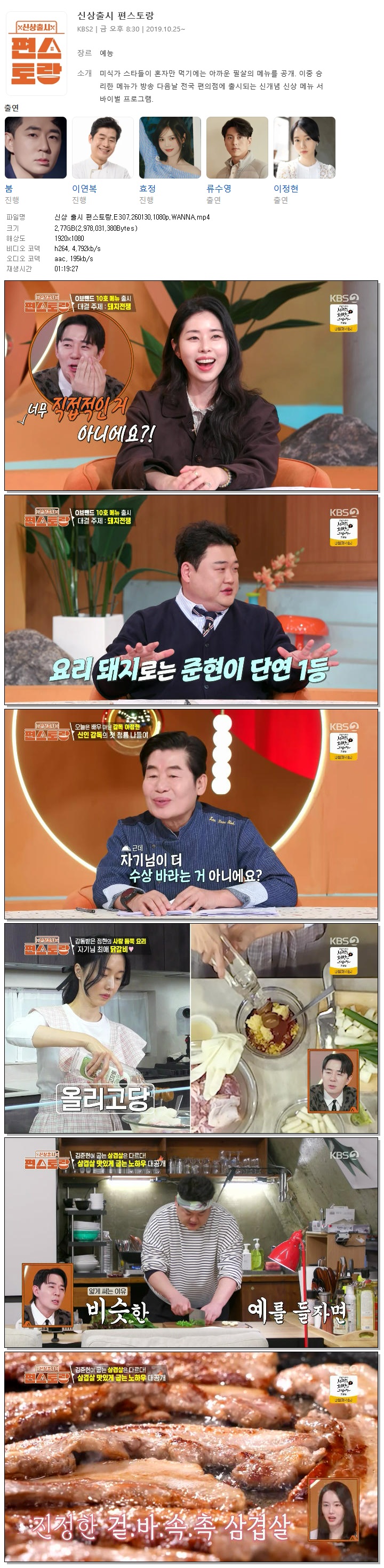 | [KBS2] 신상 출시 편스토랑.E307.260130.1080p.WANNA[이정현, 김준현].mp4 | 2.8 G | 01:19:27 | 1920x1080 |