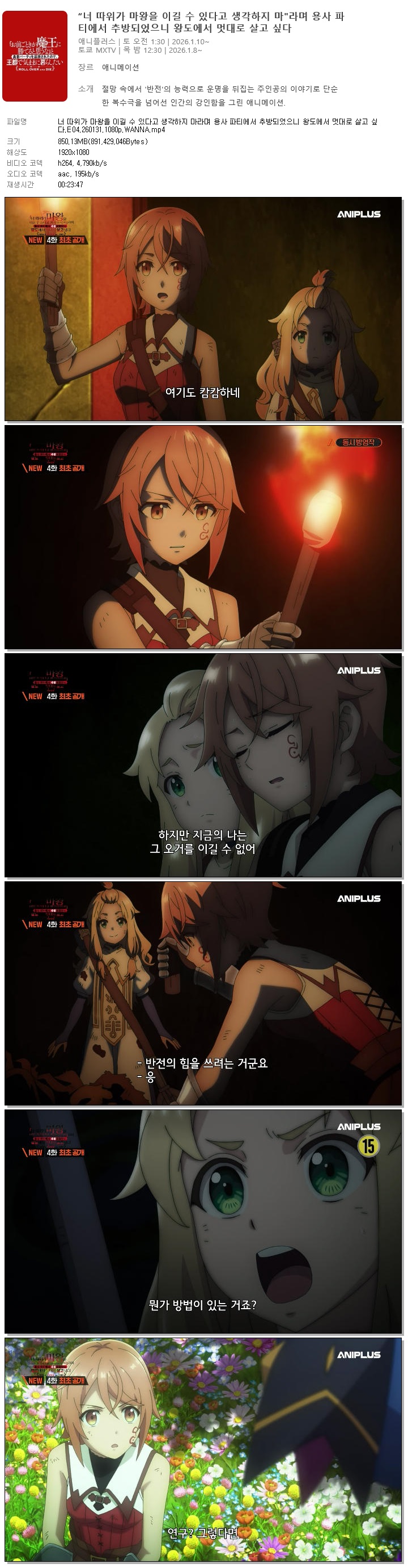 | 너 따위가 마왕을 이길 수 있다고 생각하지 마라며 용사 파티에서 추방되었으니 왕도에서 멋대로 살고 싶다.E04.260131.1080p.WANNA.mp4 | 850.1 M | 00:23:47 | 1920x1080 |