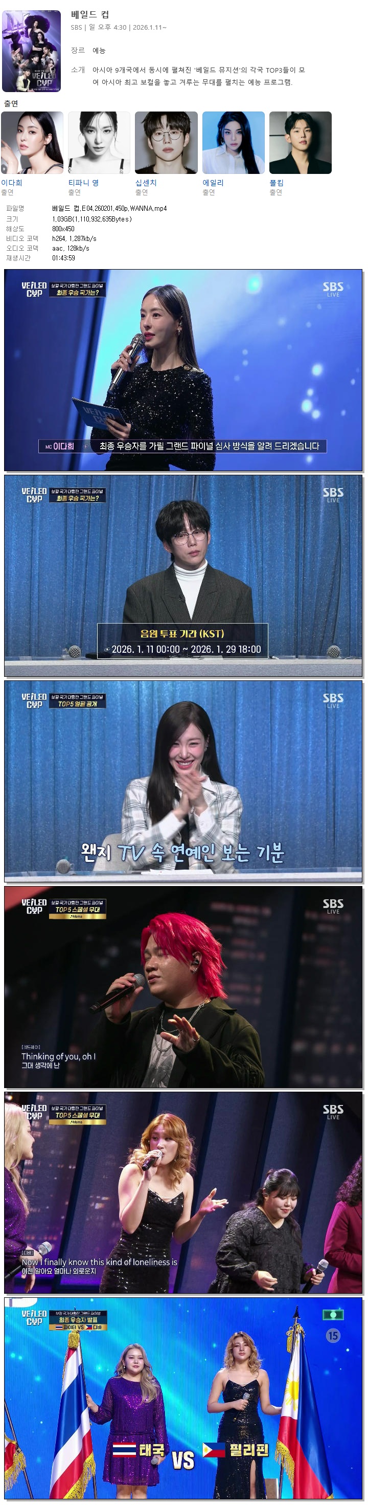 [SBS] 베일드 컵.E04.260201.450p.WANNA[권정열, 에일리].mp4 1 G 01:43:59 800x450