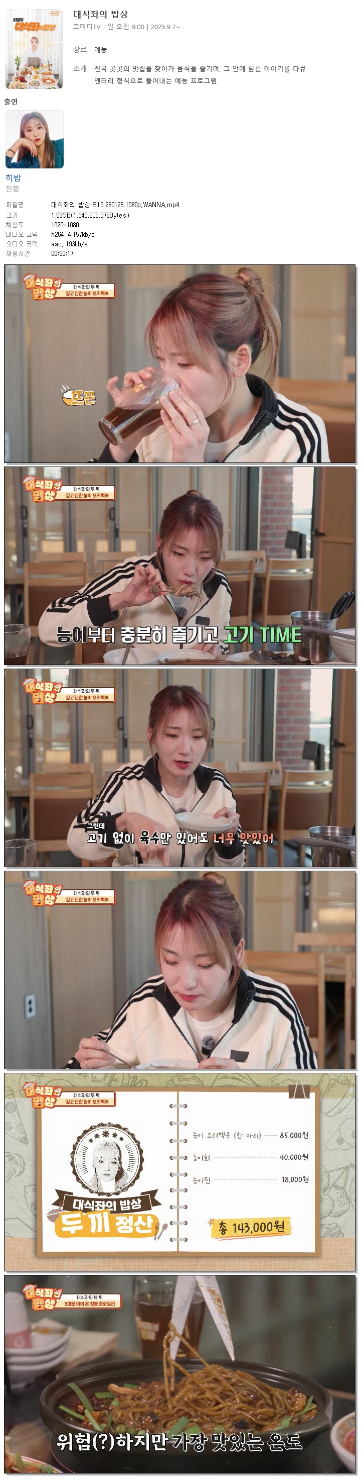 [코미디TV] 대식좌의 밥상.E19.260125.1080p.WANNA[히밥].mp4 1.5 G 00:50:17 1920x1080