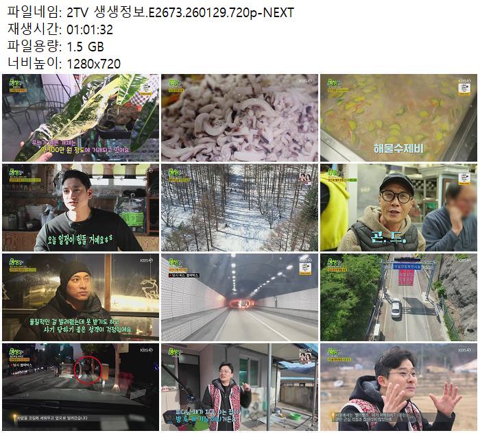 2TV 생생정보.E2673.260129.720p-NEXT.mp4 1.5 G 01:01:00 1280x720