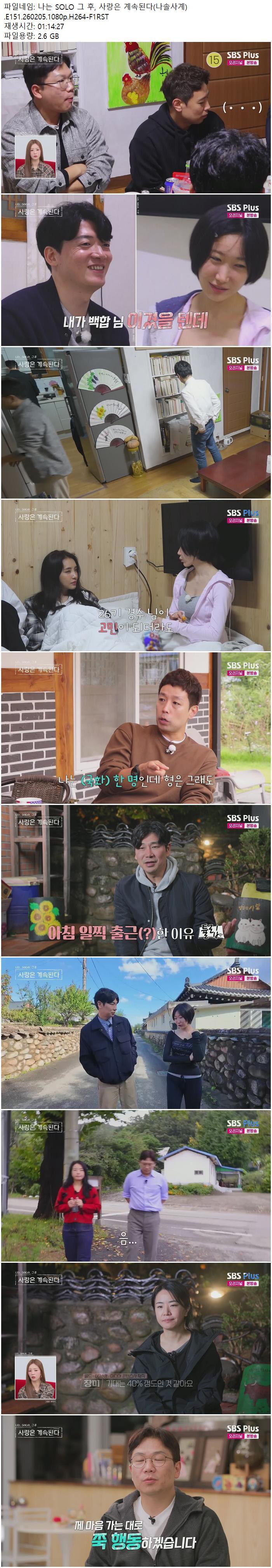 나는 SOLO 그 후, 사랑은 계속된다(나솔사계).E151.260205.1080p.H264-F1RST.mp4 2.6 G 01:14:27 1920x1080