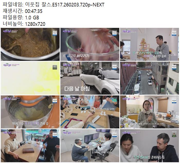 | 이웃집 찰스.E517.260203.720p-NEXT.mp4 | 1 G | 00:47:35 | 1280x720 |