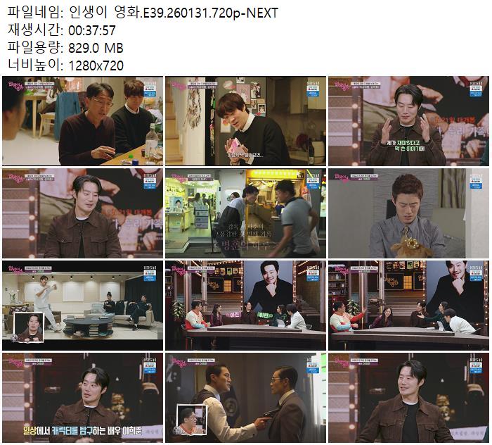 | 인생이 영화.E39.260131.720p-NEXT.mp4 | 829 M | 00:37:57 | 1280x720 |