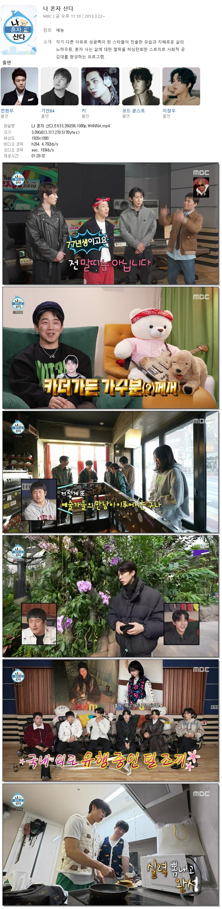 | [MBC] 나 혼자 산다.E633.260206.1080p.WANNA[한경록, 박지현].mp4 | 3.1 G | 01:28:32 | 1920x1080 |