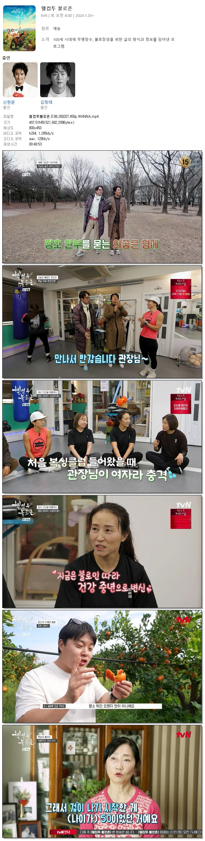 | [TVN] 웰컴투불로촌.E88.260207.450p.WANNA[신현준, 김정태].mp4 | 497.5 M | 00:48:53 | 800x450 |