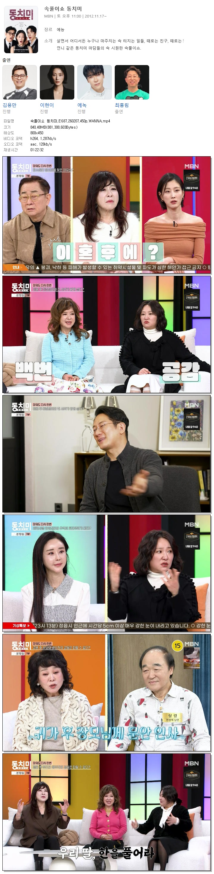 | [MBN] 속풀이쇼 동치미.E687.260207.450p.WANNA[함소원, 진화].mp4 | 840.5 M | 01:22:32 | 800x450 |