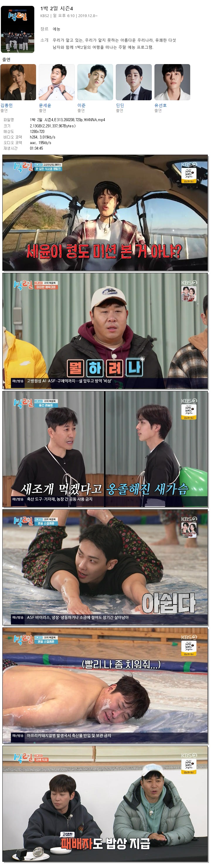 [KBS2] 1박 2일 시즌4.E313.260208.720p.WANNA[김종민, 문세윤].mp4 2.1 G 01:34:45 1280x720