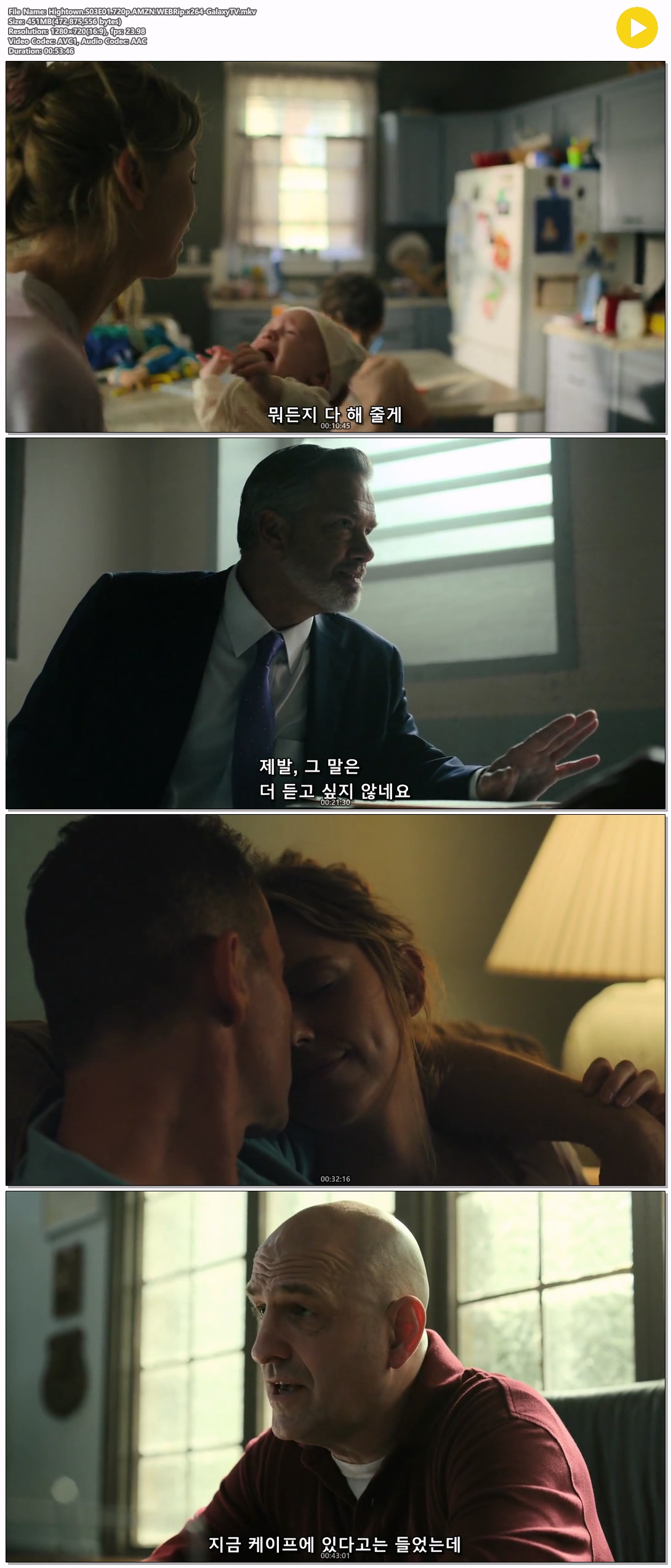 | Hightown.S03E01.720p.AMZN.WEBRip.x264-GalaxyTV.mkv | 451 M | 00:53:46 | 1280x720 |