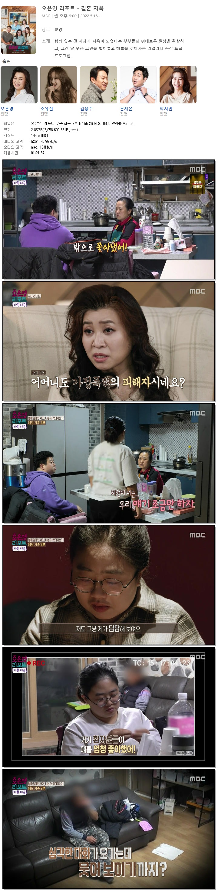 [MBC] 오은영 리포트 가족지옥 2부.E155.260209.1080p.WANNA[오은영, 문세윤].mp4 2.8 G 01:21:37 1920x1080