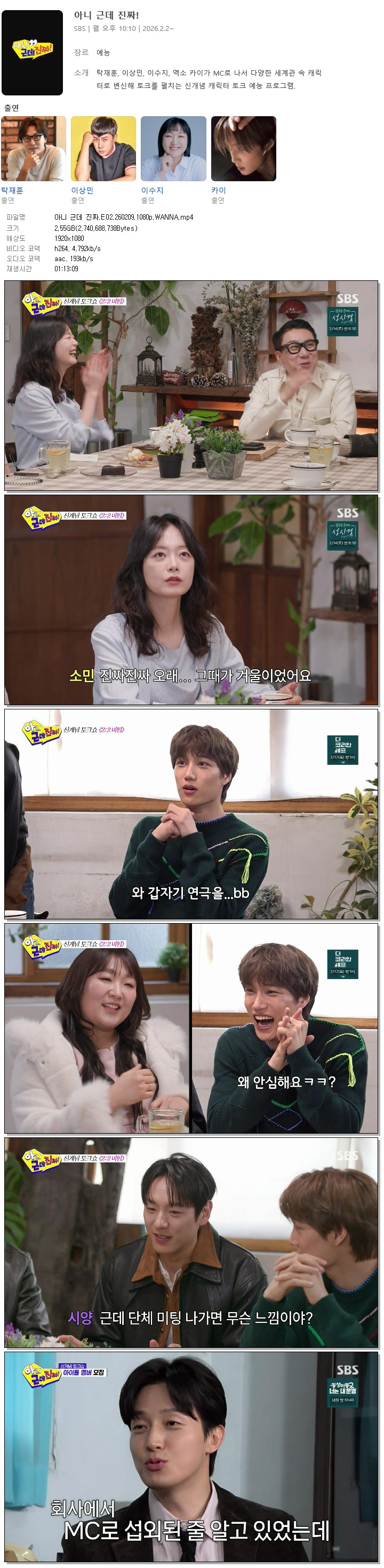 | [SBS] 아니 근데 진짜.E02.260209.1080p.WANNA[이용진, 허경환].mp4 | 2.6 G | 01:13:09 | 1920x1080 |