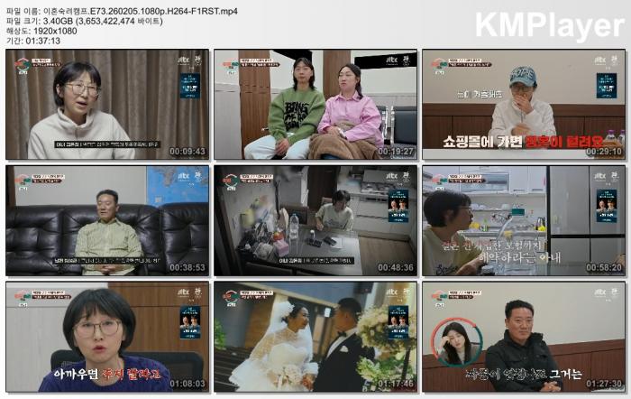 | 이혼숙려캠프.E73.260205.1080p.H264-F1RST.mp4 | 3.4 G | 01:37:00 | 1920x1080 |