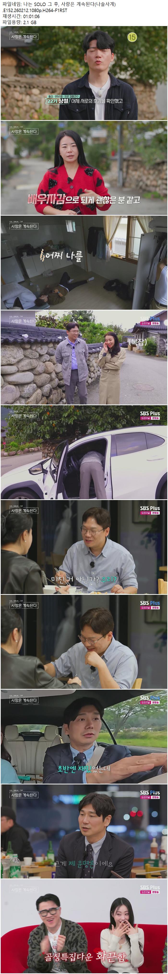 | 나는 SOLO 그 후, 사랑은 계속된다(나솔사계).E152.260212.1080p.H264-F1RST.mp4 | 2.1 G | 01:01:06 | 1920x1080 |