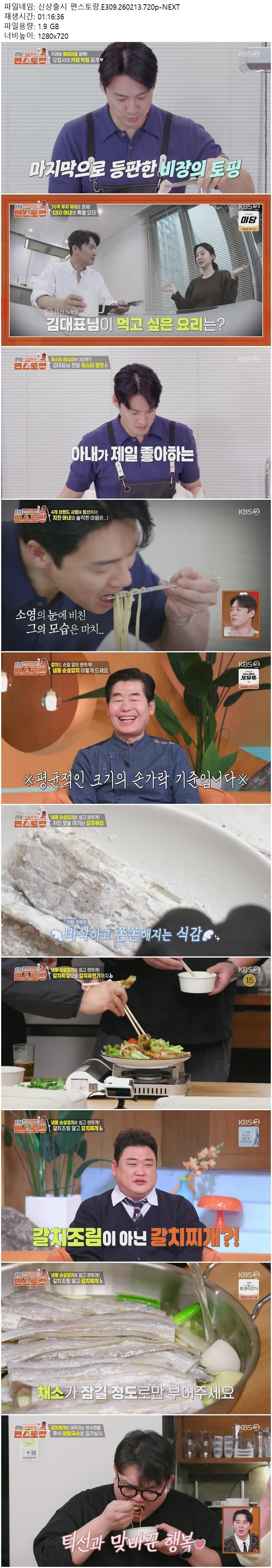 | 신상출시 편스토랑.E309.260213.720p-NEXT.mp4 | 1.9 G | 01:16:36 | 1280x720 |
