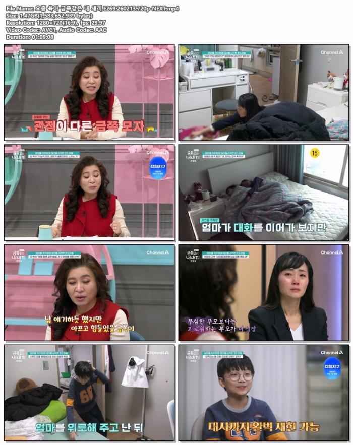| 요즘 육아 금쪽같은 내 새끼.E269.260213.720p-NEXT.mp4 | 1.5 G | 01:09:00 | 1280x720 |
