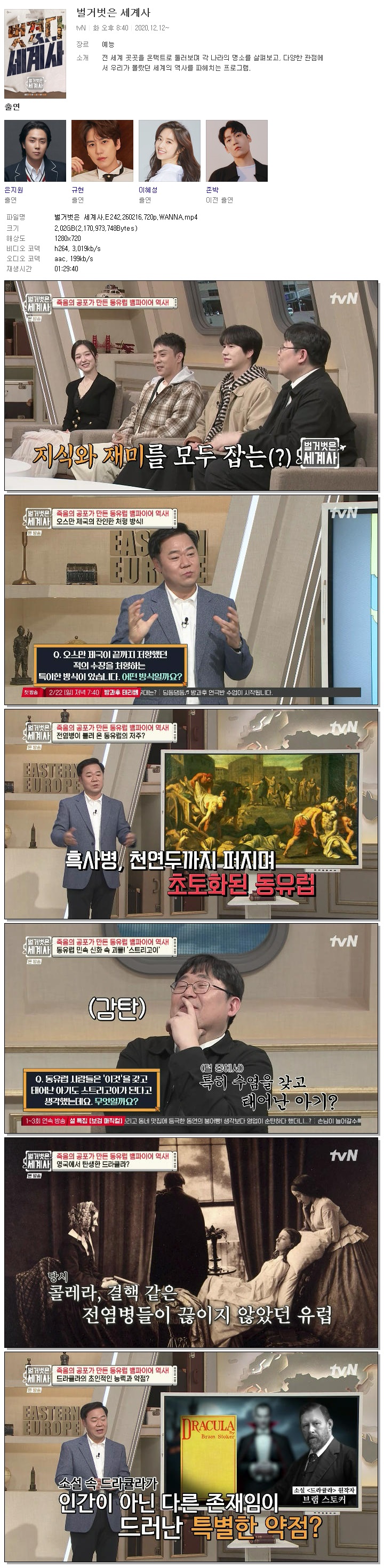 | [TVN] 벌거벗은 세계사.E242.260216.720p.WANNA[은지원, 규현].mp4 | 2 G | 01:29:40 | 1280x720 |
