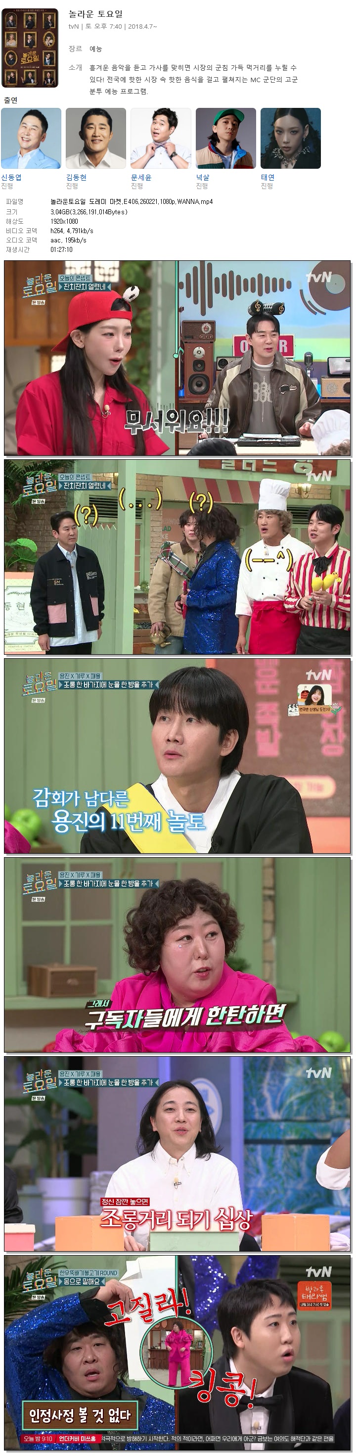 | [TVN] 놀라운토요일 도레미 마켓.E406.260221.1080p.WANNA[이용진, 신기루].mp4 | 3 G | 01:27:10 | 1920x1080 |