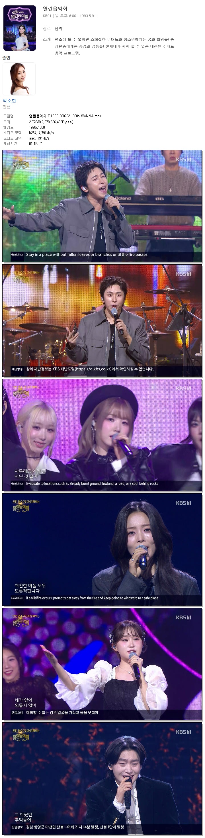 [KBS1] 열린음악회.E1565.260222.1080p.WANNA[데이브레이크, 인순이].mp4 2.8 G 01:19:17 1920x1080