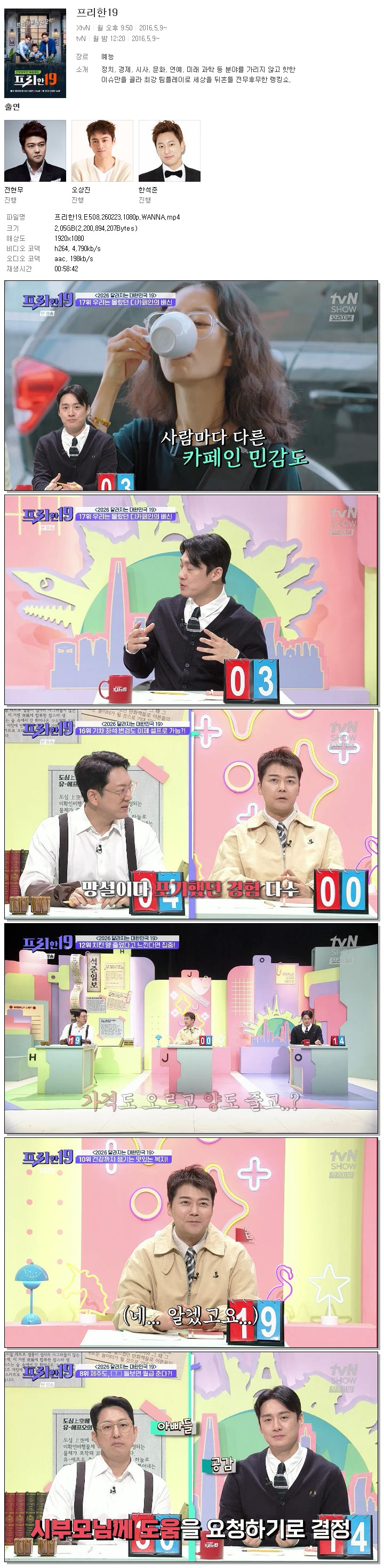 | [TVNSHOW] 프리한19.E508.260223.1080p.WANNA[전현무, 오상진].mp4 | 2 G | 00:58:42 | 1920x1080 |