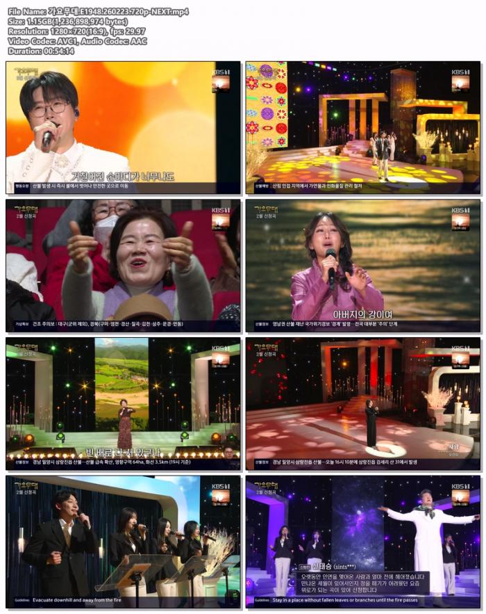 | 가요무대.E1948.260223.720p-NEXT.mp4 | 1.2 G | 00:54:14 | 1280x720 |