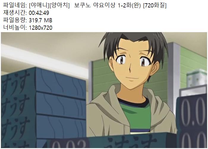 | [야애니][양아치] 보쿠노 야요이상 2화 [720화질].mp4 | 292.8 M | 00:41:23 | 1280x720 |