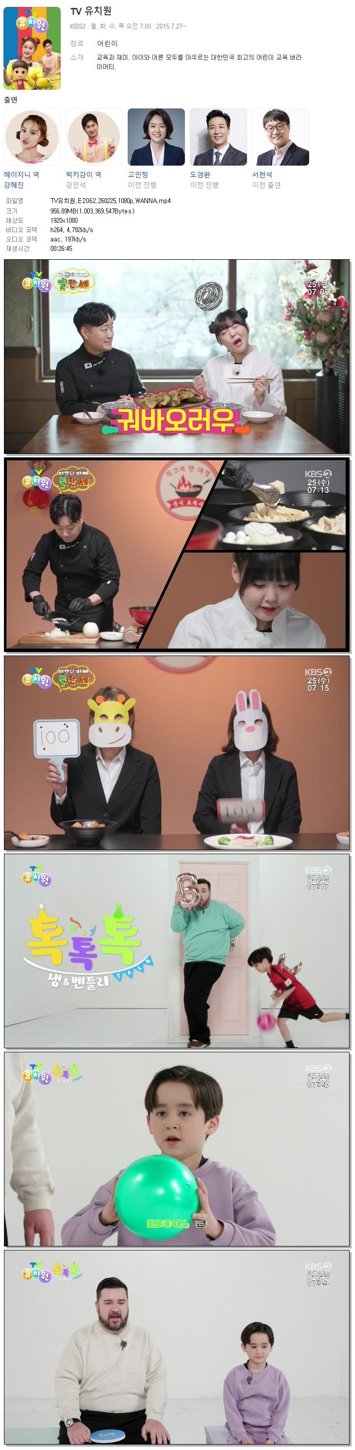 [KBS2] TV유치원.E2062.260225.1080p.WANNA.mp4 956.9 M 00:26:45 1920x1080