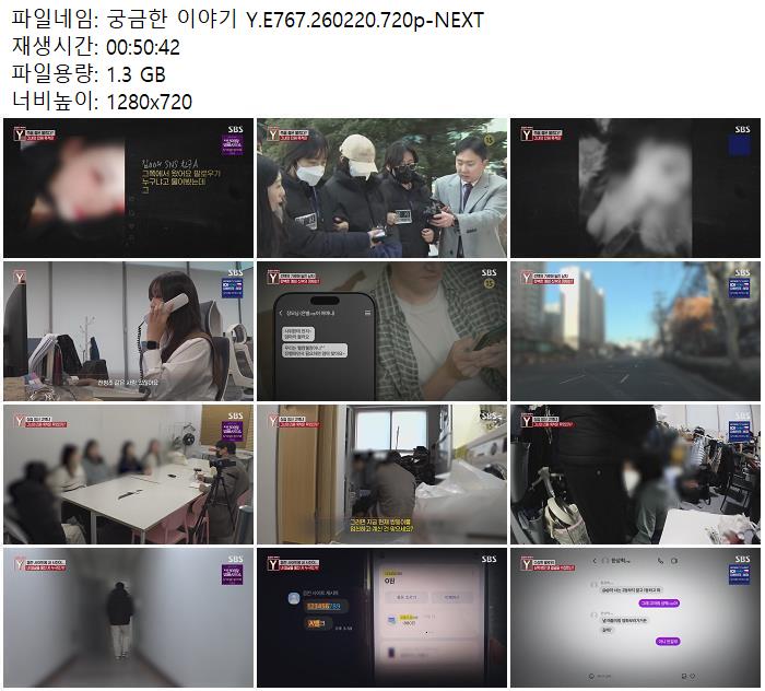 | 궁금한 이야기 Y.E767.260220.720p-NEXT.mp4 | 1.3 G | 00:50:42 | 1280x720 |