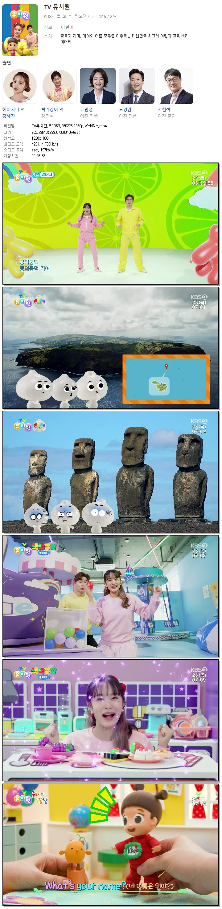 | [KBS2] TV유치원.E2063.260226.1080p.WANNA.mp4 | 952.8 M | 00:26:38 | 1920x1080 |