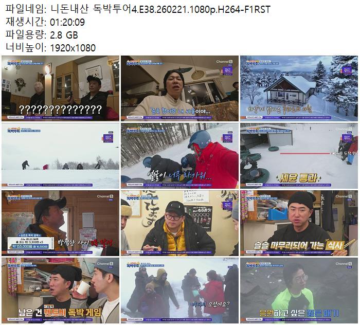 | 니돈내산 독박투어4.E38.260221.1080p.H264-F1RST.mp4 | 2.8 G | 01:20:00 | 1920x1080 |