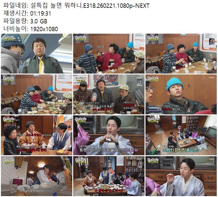 설특집 놀면 뭐하니.E318.260221.1080p-NEXT.mp4 3 G 01:19:00 1920x1080
