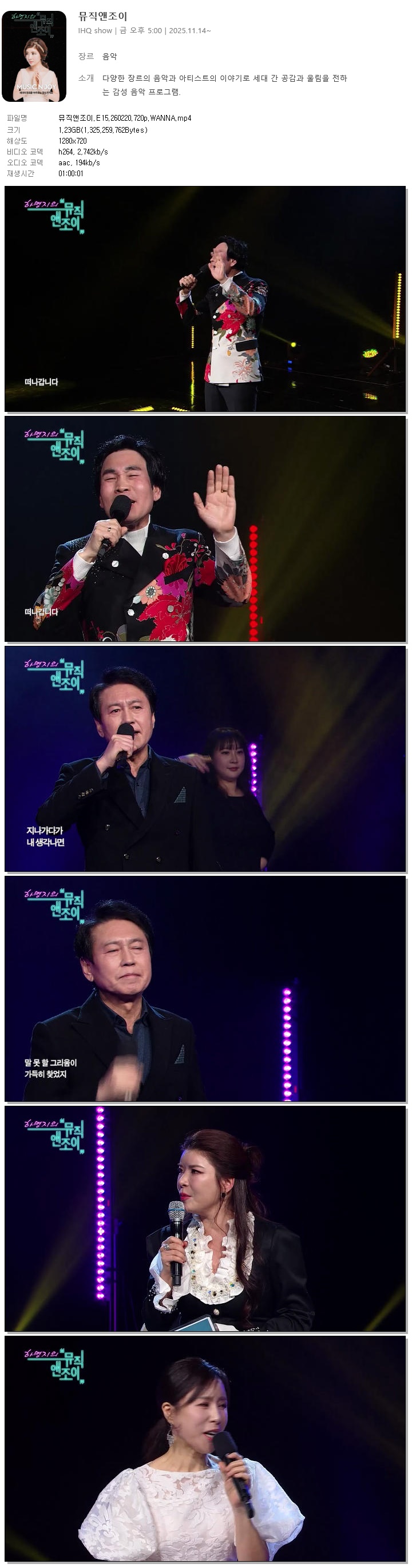 | [i SHOW] 뮤직앤조이.E15.260220.720p.WANNA[하명지].mp4 | 1.2 G | 01:00:01 | 1280x720 |