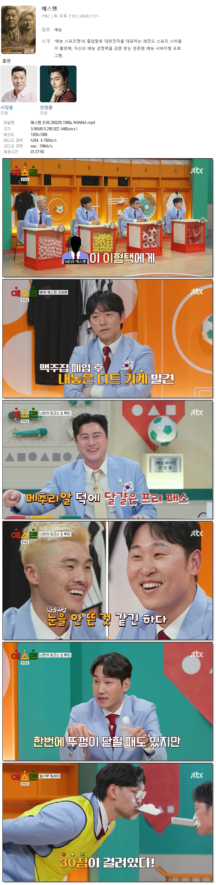 | [JTBC] 예스맨.E06.260228.1080p.WANNA[서장훈, 안정환].mp4 | 3.1 G | 01:27:50 | 1920x1080 |