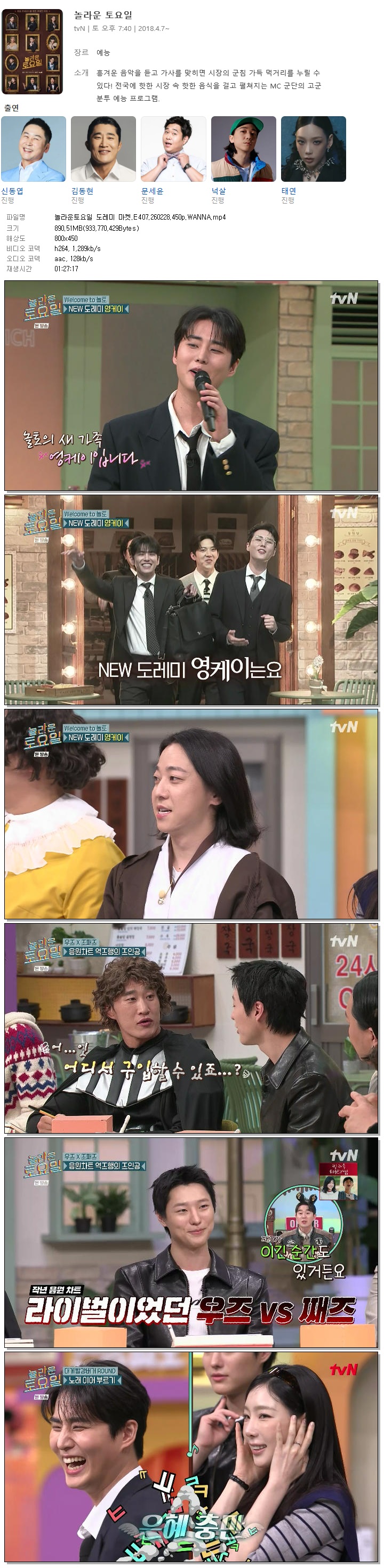 | [TVN] 놀라운토요일 도레미 마켓.E407.260228.450p.WANNA[영케이, 조째즈].mp4 | 890.5 M | 01:27:17 | 800x450 |