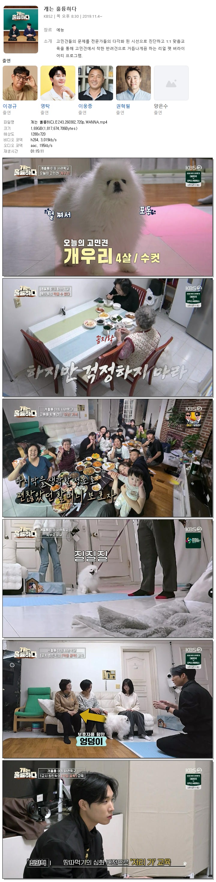 | [KBS2] 개는 훌륭하다.E243.260302.720p.WANNA[이경규, 영탁].mp4 | 1.7 G | 01:15:11 | 1280x720 |