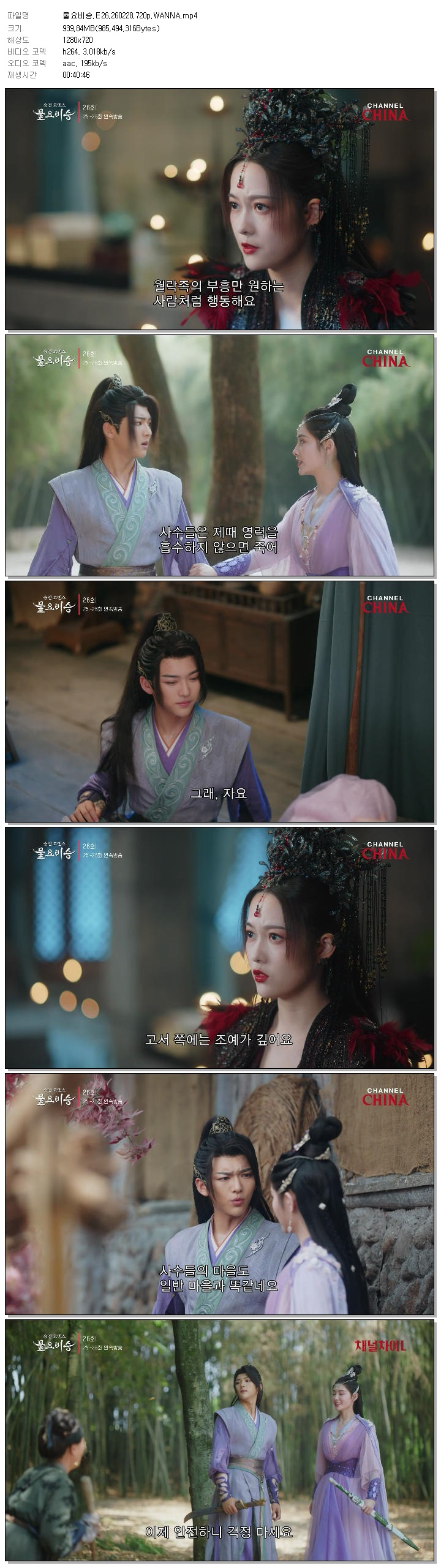 | [채널차이나] 물요비승.E26.260228.720p.WANNA[이굉의, 육정옥].mp4 | 939.8 M | 00:40:46 | 1280x720 |