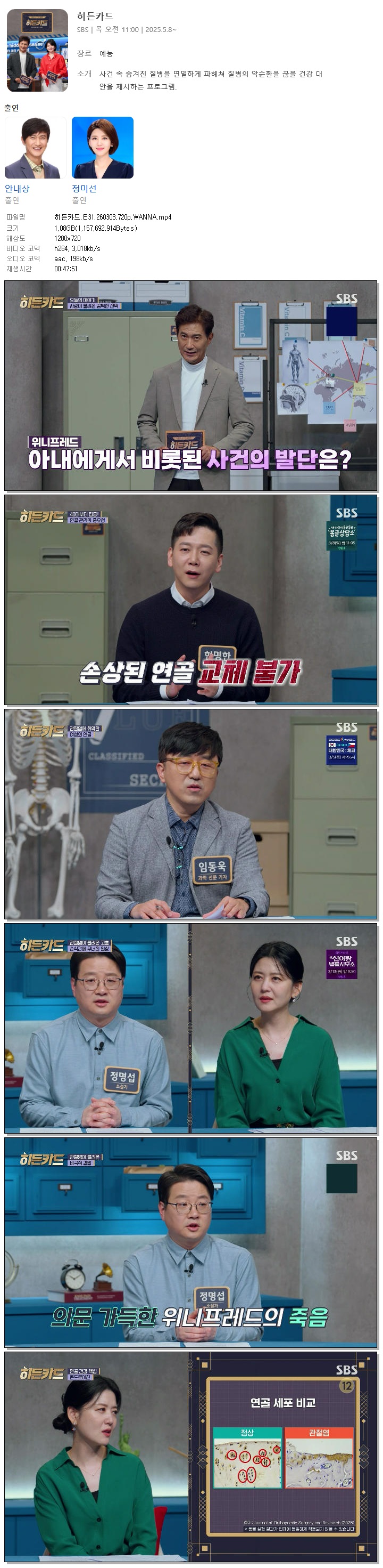 | [SBS] 히든카드.E31.260303.720p.WANNA[안내상, 정미선].mp4 | 1.1 G | 00:47:51 | 1280x720 |