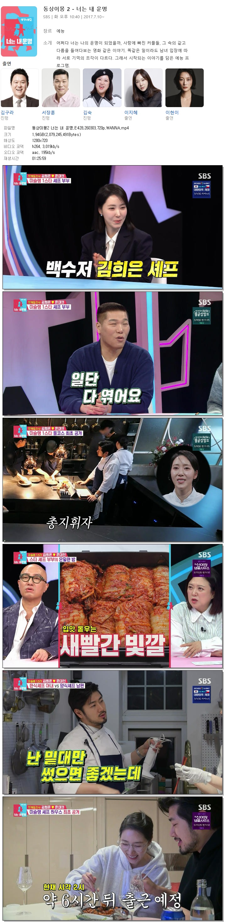 | [SBS] 동상이몽2 너는 내 운명.E428.260303.720p.WANNA[김희은, 윤대현].mp4 | 1.9 G | 01:25:59 | 1280x720 |